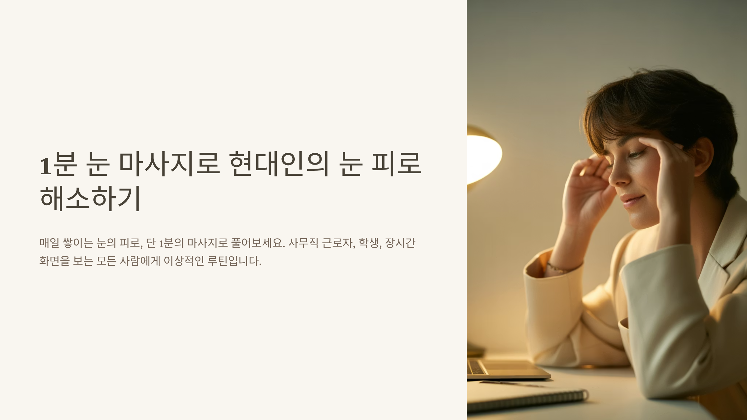 매일 쌓이는 눈의 피로, 단 1분의 마사지로 풀어보세요.