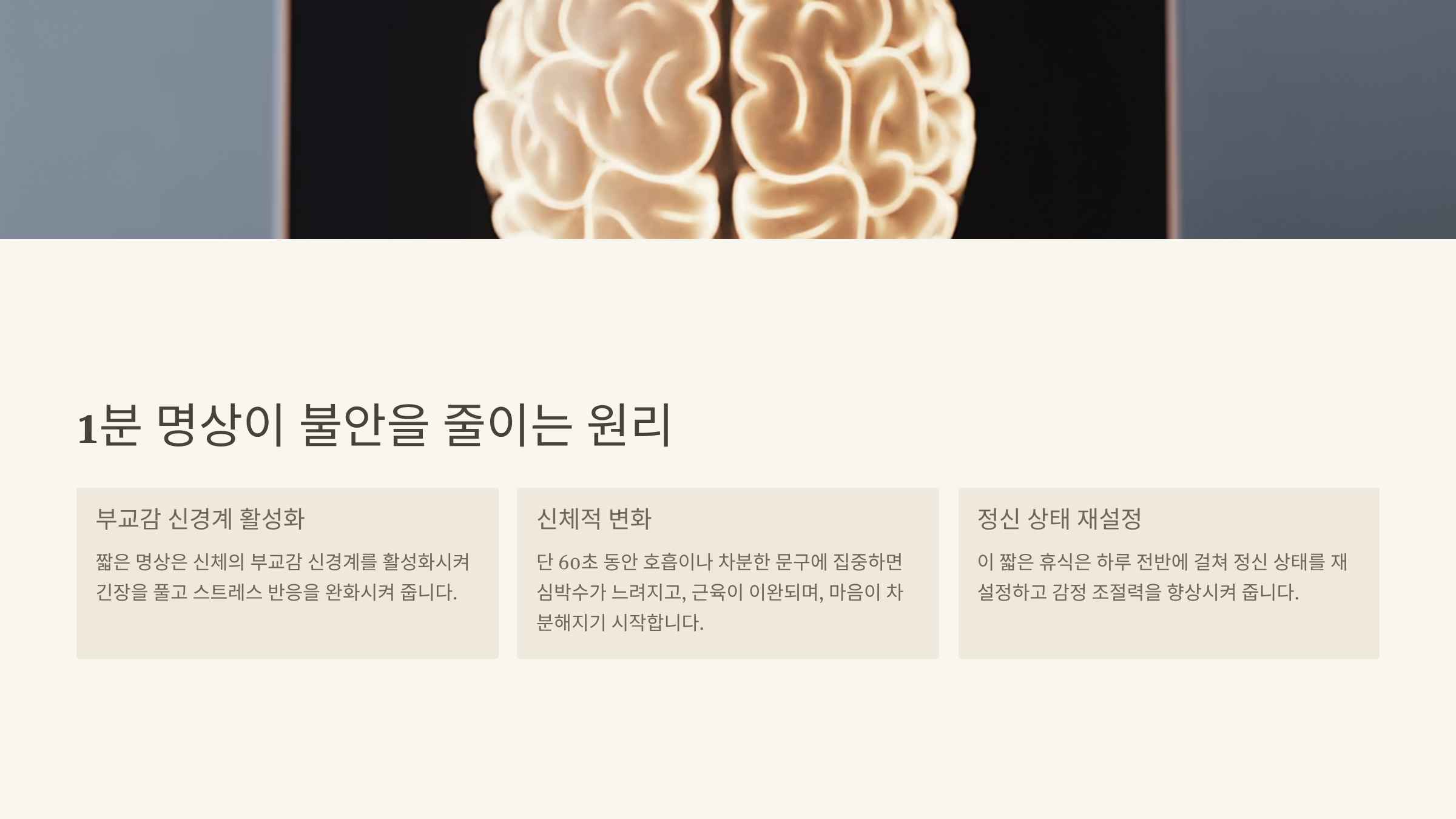 하루 단 1분의 명상으로 불안을 효과적으로 줄이고 바쁜 일상 속 평온을 되찾는 방법을 알아보세요.